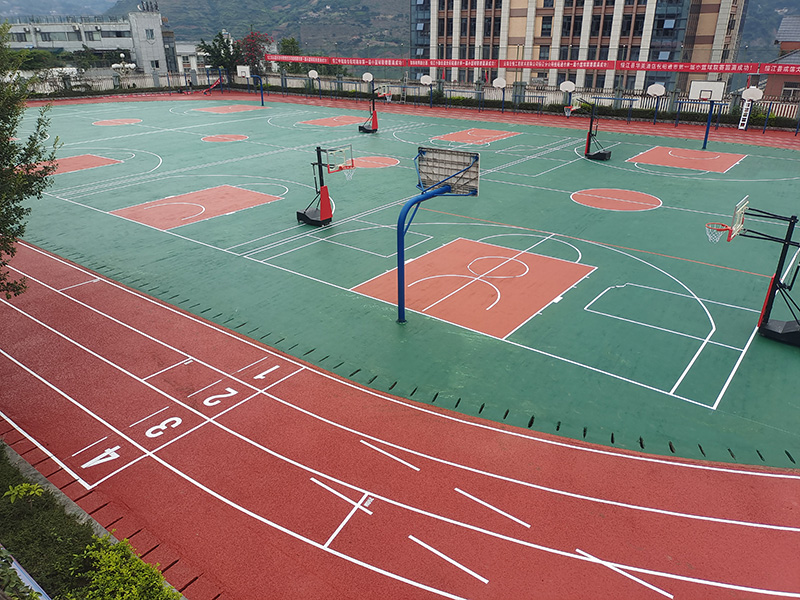 云南昭通水富凤凰小学运动场混合型跑道及硅pu篮球场
